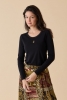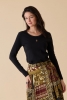 Modèle uni en côte 1x1 coton, col rond fil contrasté, manches longues, fish "ROCKING" print avec broderies or et couleurs.