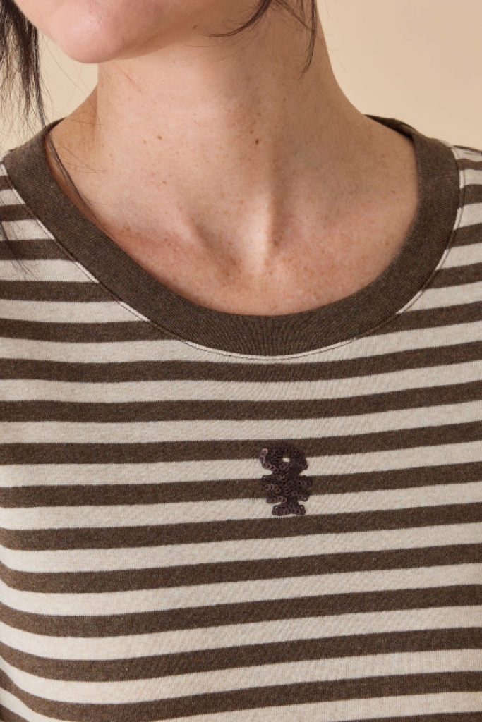 La marinière revisitée : le t-shirt rayures bicolore chiné en côte 1x1 coton, col rond uni, manches longues, bas arrondi, fish "SEQUINS".