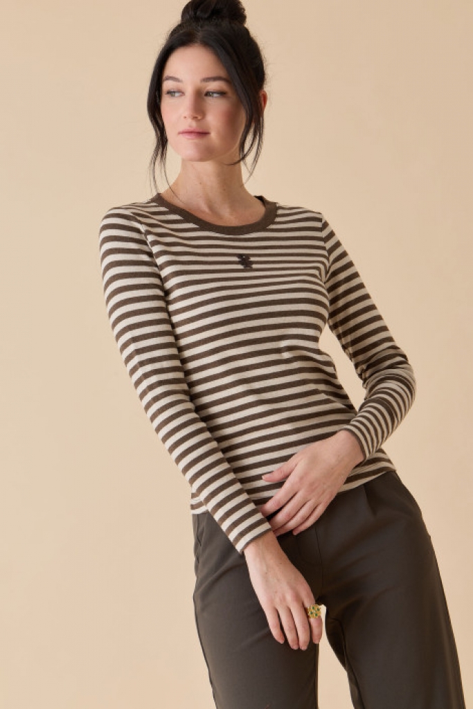Tee shirt DIPLODOCUS DTSL421 Ecru chiné/choco chiné