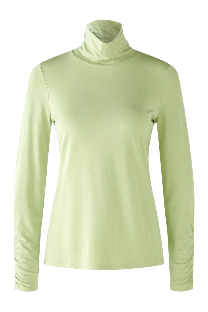 L'indispensable tee-shirt à col roulé que vous glisserez sous vos pulls ou vestes tout au long de cette saison. Produit en viscose ultra douce, très agréable à porter au quotidien. Manches longues avec détails froncés. Coupe ajustée.