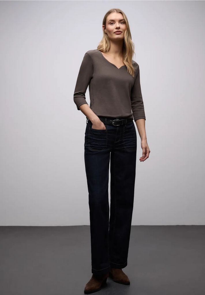 Dans la coupe ADA, ce tee-shirt en jersey apporte une légèreté féminine dans votre garde-robe. L'encolure en cœur raffinée et les manches 3/4 en font un compagnon charmant pour plusieurs saisons. Le doux mélange coton-modal assure un grand confort - idéal comme sous-shirt ou porté seul pour des looks simples mais stylés.