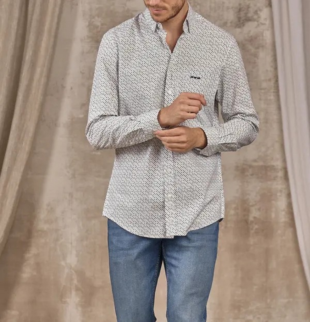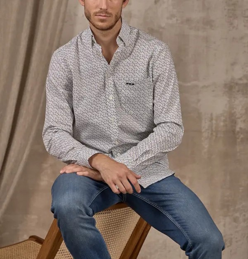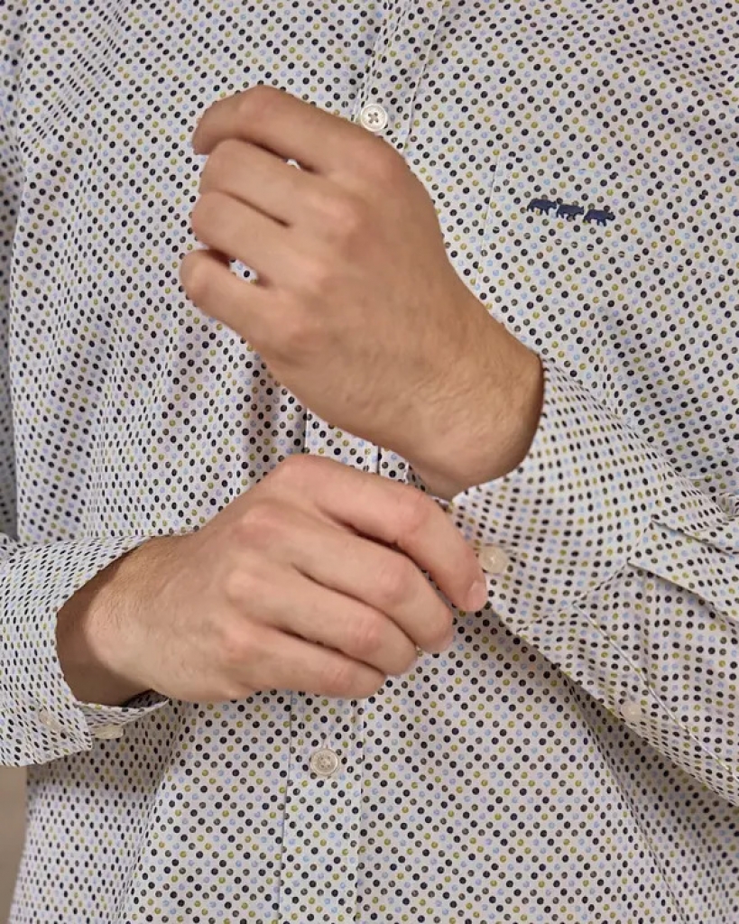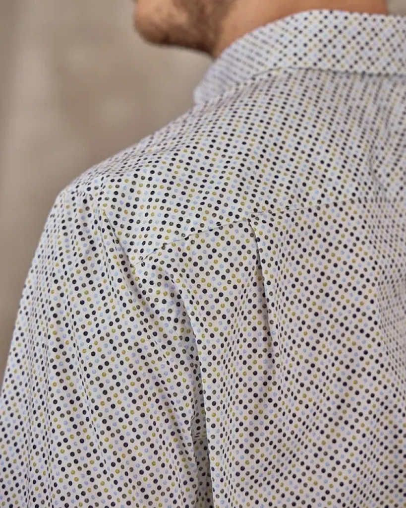 La chemise à petits pois multicolires, très facile à vivre au quotidien.