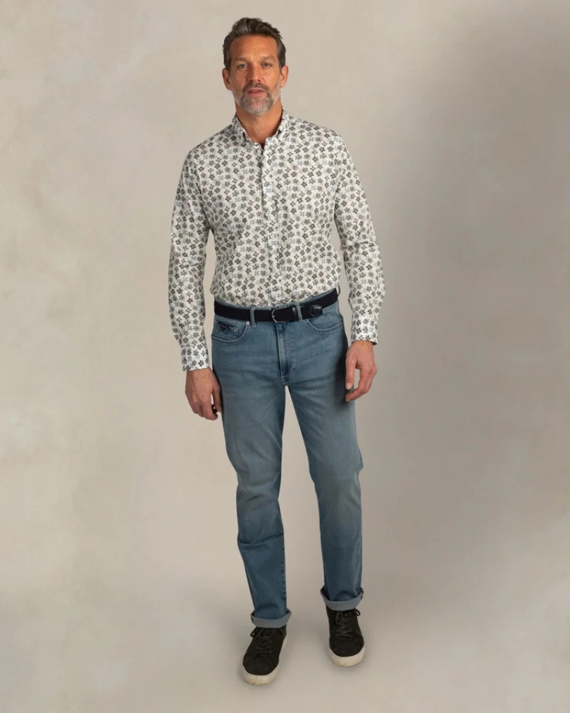 Cette chemise allie confort et style, avec un col classique, une fermeture boutonnée et des manches longues, agrémentée de subtils accents de logo sur la poitrine. Confectionnée dans un coton doux avec une touche de stretch pour une plus grande liberté de mouvement, cette chemise à la coupe regular offre une allure à la fois élégante et décontractée. Portez-la avec un jean foncé pour un look casual soigné, ou associez-la à un chino pour un effet plus raffiné.