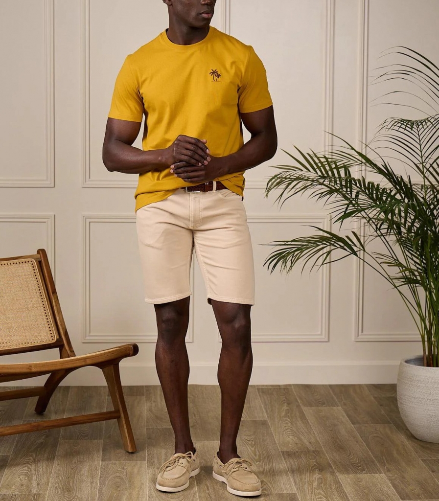 Prêt pour les beaux jours ? Adoptez ce bermuda denim dans son coloris beige tendance !. Réalisé en coton et polyester avec une touche d’élasthanne, ce modèle confortable est l’indispensable des looks chics et décontractés. Pour un style sans faille, il présente plusieurs poches à l’avant et à l’arrière pour ranger vos objets essentiels. Un jacron MISE AU GREEN signe l’ensemble.