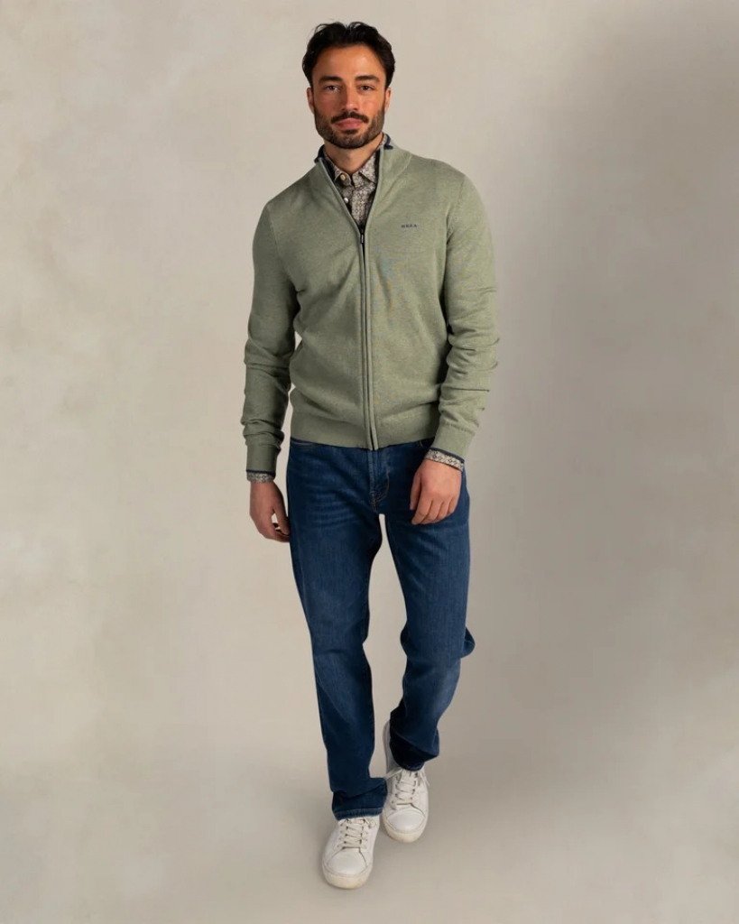 Ce cardigan en maille de NZA New Zealand Auckland allie confort et style élégant. Doté d'un demi-zip au col et de manches longues, ce cardigan à la coupe regular convient aussi bien pour un look décontracté que pour des occasions plus habillées. Confectionné à 100 % en coton, il est doux au toucher et offre un confort respirant tout au long de la journée. Le logo discret sur la poitrine apporte une touche raffinée. Associez-le à un jean foncé pour un look intemporel, ou à un chino pour une allure plus soignée.