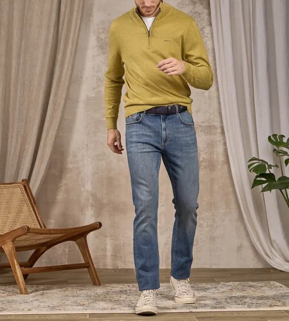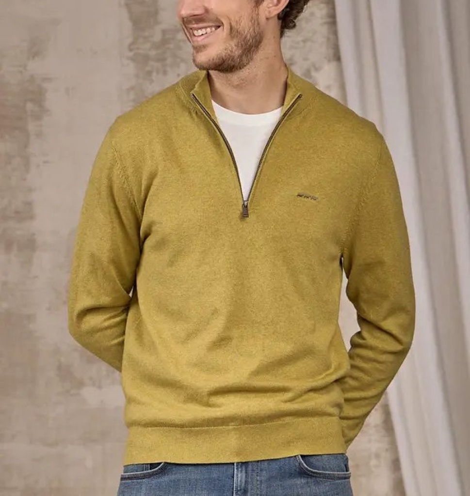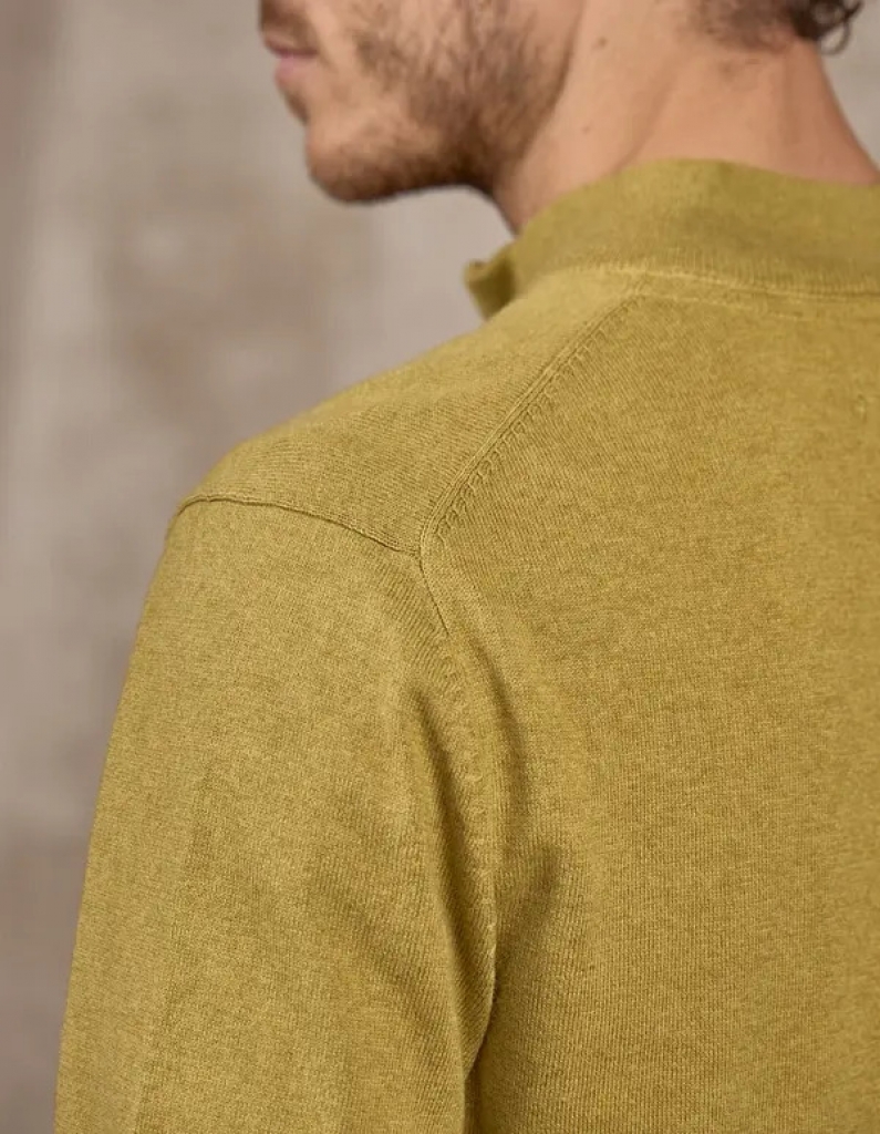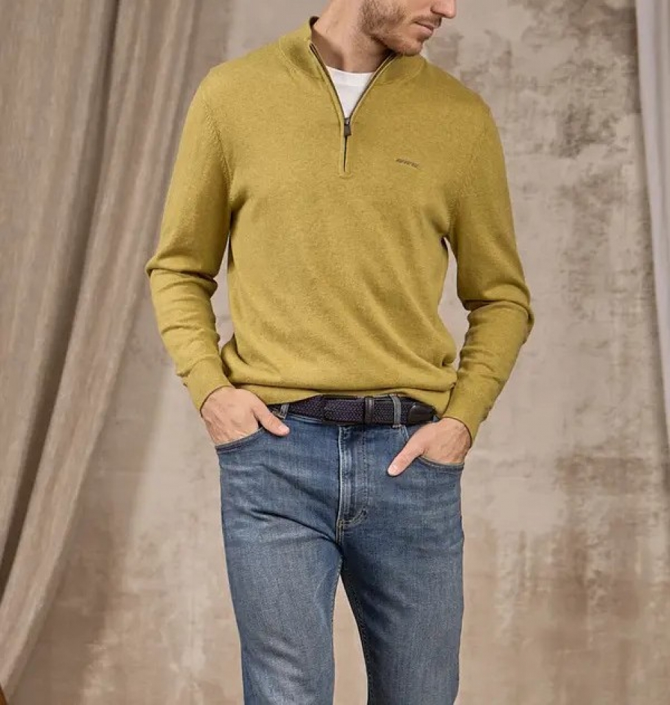 À la fois chic et sobre, ce pull à manches longues est un indémodable !. Décliné dans un coloris vert clair, ce modèle tendance se porte aussi bien avec un jean qu’un pantalon chino. Il possède une coupe droite et un col avec fermeture éclair pour des tenues confortables, mais toujours soignées. Confectionné en coton avec une pointe de cachemire, il offre une sensation de confort agréable sur la peau. Des finitions en bord-côtes et un logo 3 vaches brodé sur la poitrine apportent la touche finale.