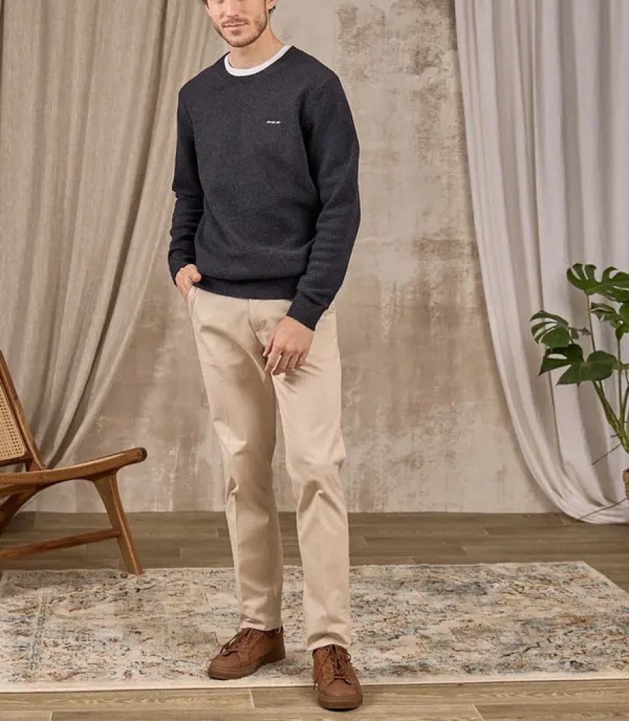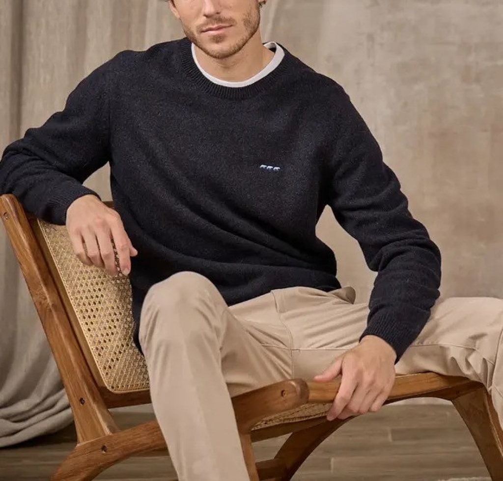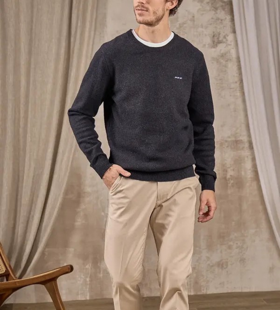 Avec son coloris bleu marine uni et son col rond, ce pull est un must-have du quotidien !. A la fois chaleureux et confortable, il est composé majoritairement en laine. Son plus ? Sa coupe droite et ses finitions côtelées au niveau du col, de la base et des poignets. Savant mélange entre douceur et robustesse, ce modèle en maille chinée permet de créer de nombreux looks chics et décontractés. Un logo brodé Mise au Green sublime son design intemporel.