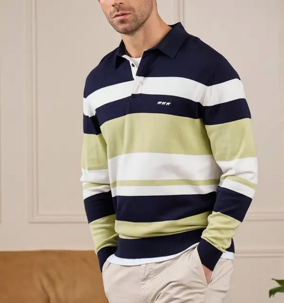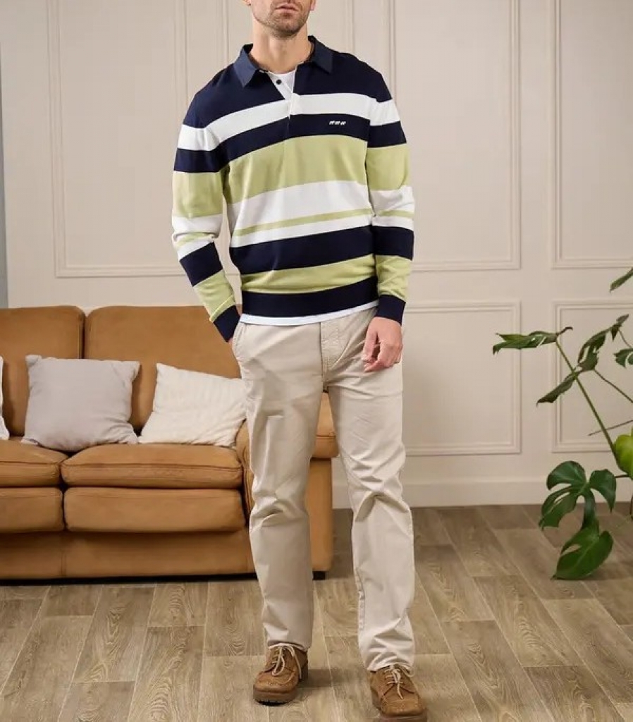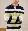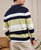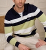 Pull rugby rayé vert clair.