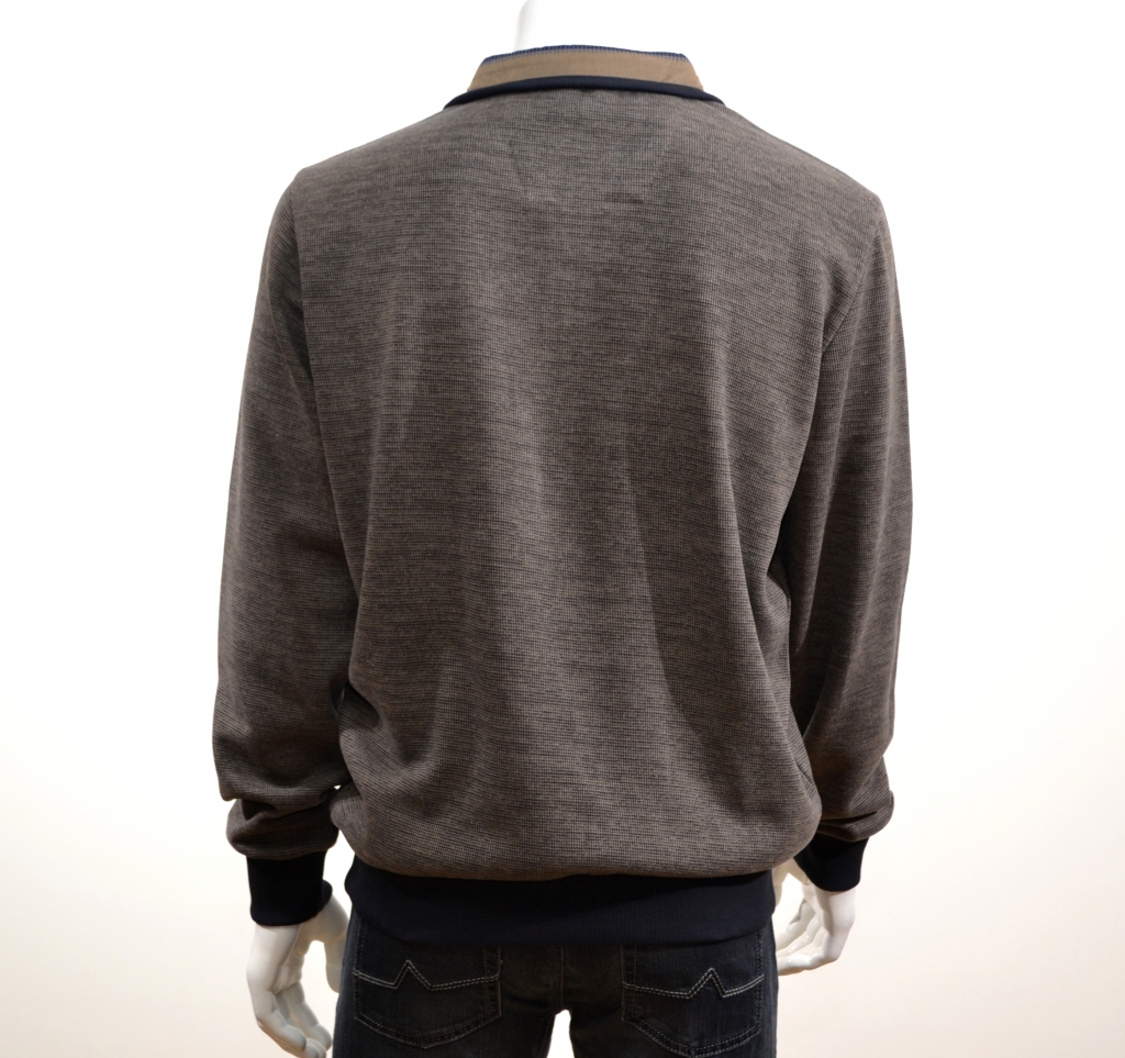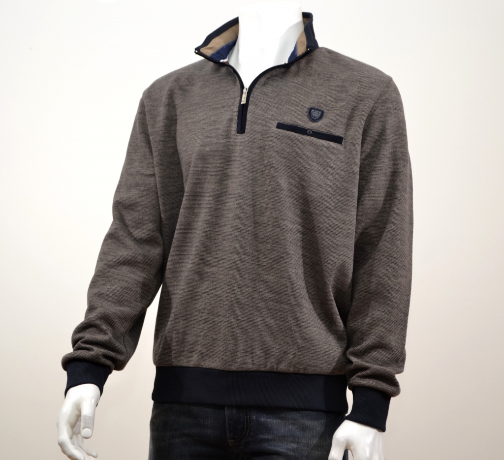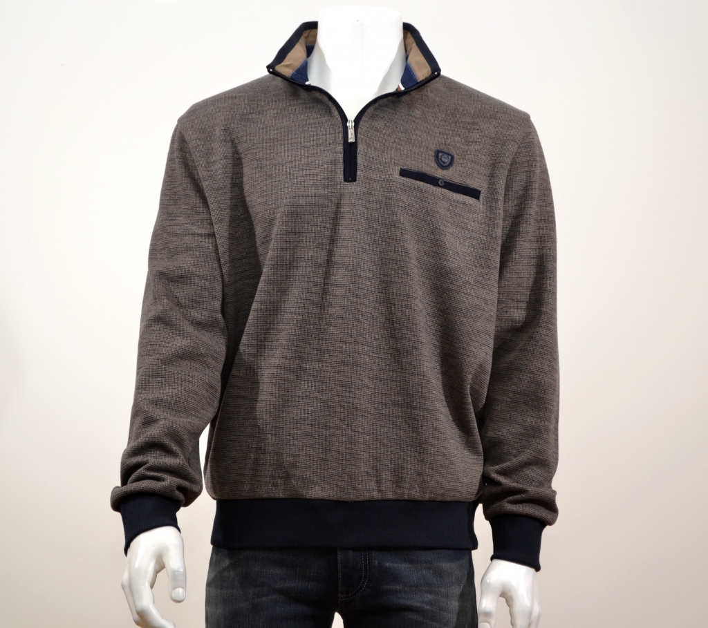 Sympathique modèle de forme camionneur, travaillé sur support bicolore et agrémenté de nombreuses fantaisies qui lui donnnent ainsi toute sa spécificité, notammment ses différents inserts côtelés bleu marine placés sur l'encolure et sa garniture intérieure de col. Les bordures de manches et la partie basse sont terminées par un empiècement en maille à côtes plates vous assurant une parfaite tenue. Un discret lettrage logotypé "MC" en gomme se trouve placé sur le buste. Ce sweat comporte également une poche boutonnée poitrine avec gance contrstée.