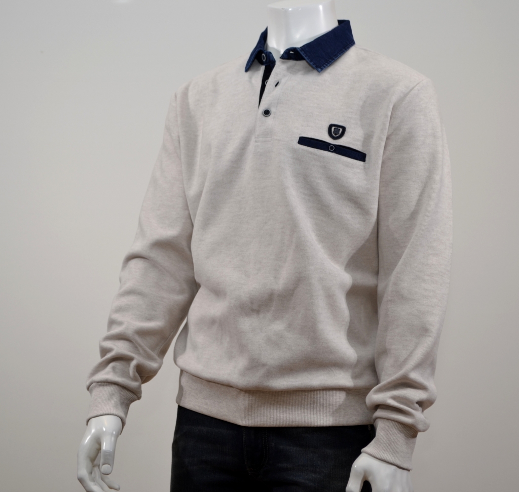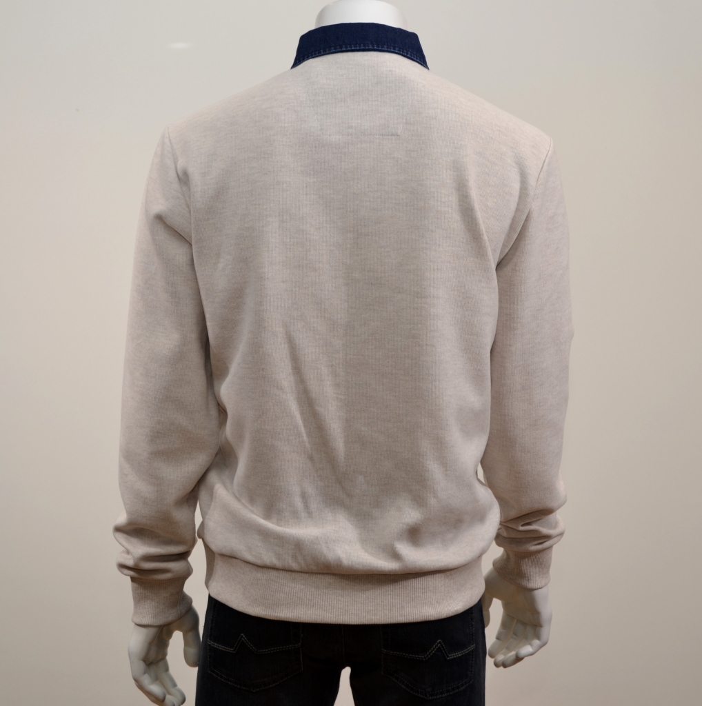 Sympathique modèle de forme polo, travaillé sur un support uni et agrémenté de nombreuses fantaisies qui lui donnnent ainsi toute sa spécificité, notammment ses différents inserts en denim sur la patte de boutonnage et l'encolure. Les bordures de manches et la partie basse sont terminées par un empiècement en maille à côtes plates vous assurant une parfaite tenue. Ce sweat comporte également une poche gancée et boutonnée poitrine ainsi qu'un petit écusson aux initiales de la marque.
