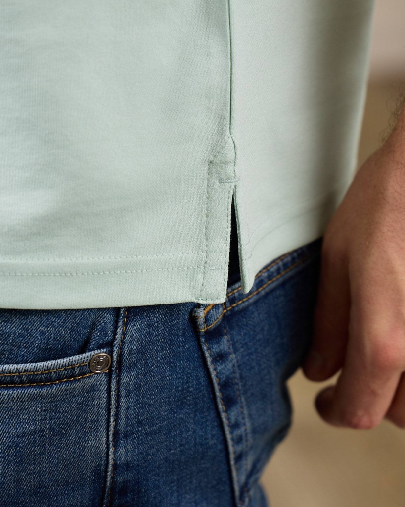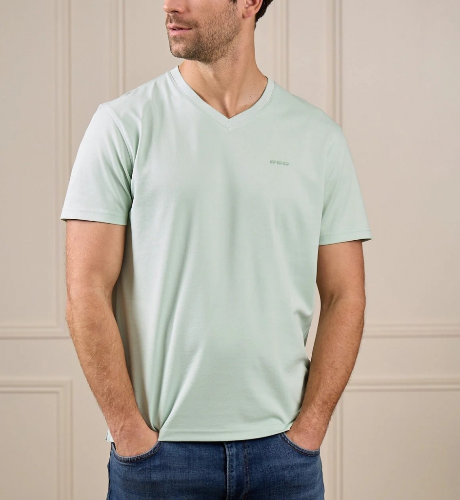 Ce tee-shirt pour homme dévoile un col V contrasté et des surpiqûres au niveau des manches et de la base. Autant de détails soignés qui font de lui un modèle basique mais plein de style ! Son plus ? Sa matière mélangée en coton issu de l'agriculture biologique et polyester qui offre un maximum d’aisance. Son coloris vert eau dynamise facilement chaque tenue pour une allure chic en toute occasion.