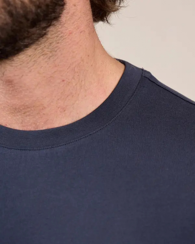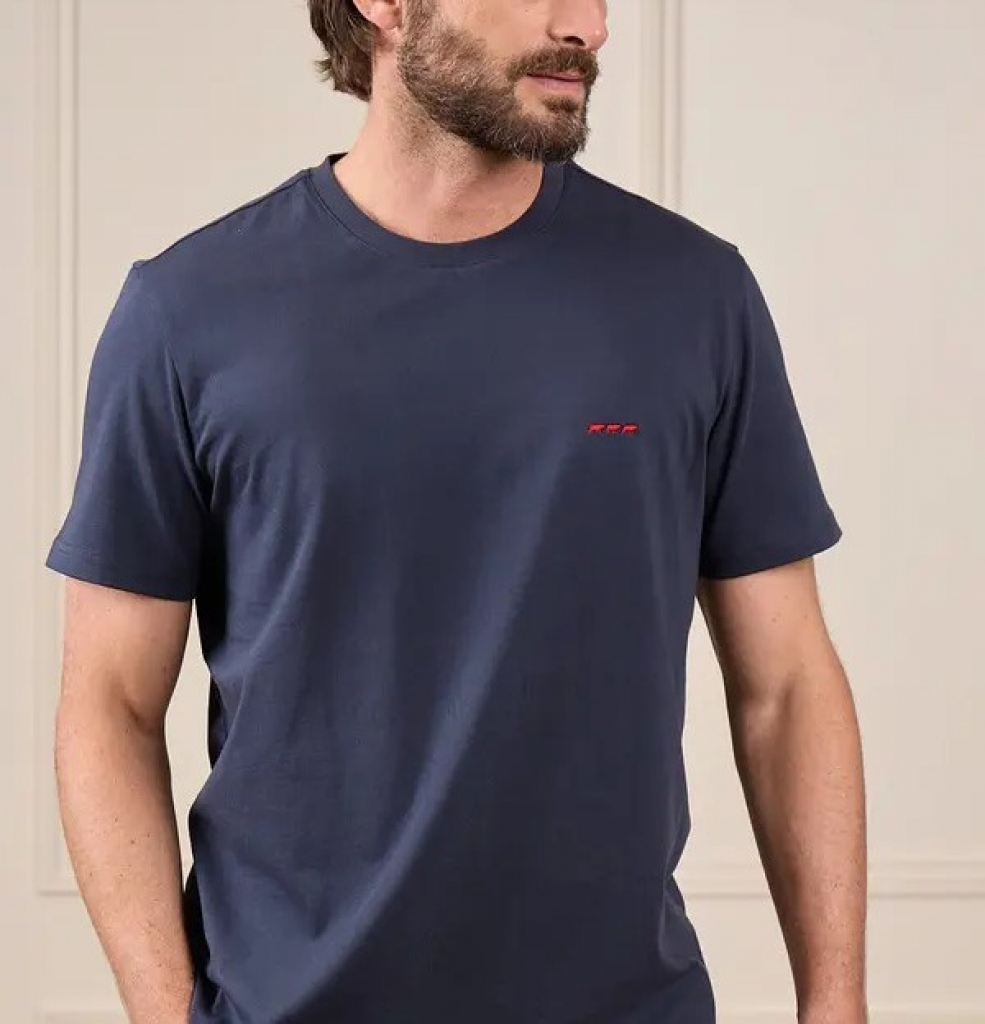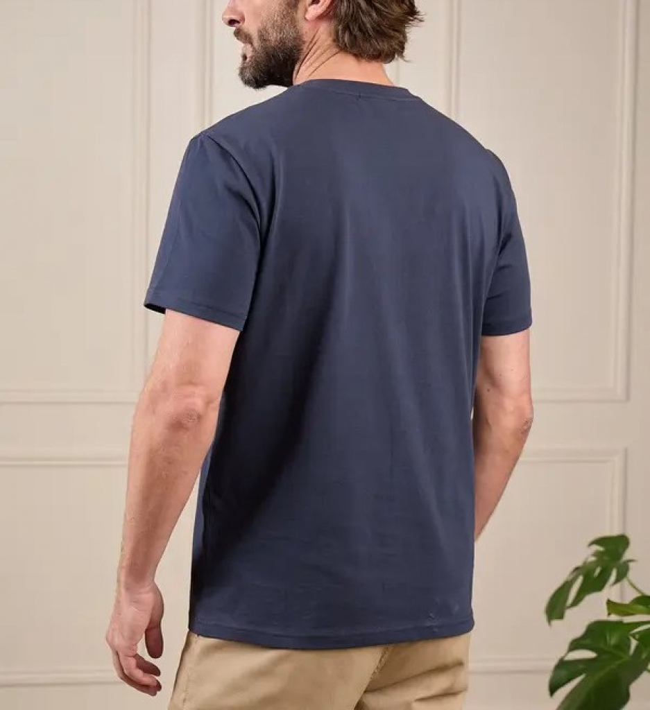 Soyez à l’aise toute la journée avec ce tee-shirt pour homme à manches courtes. Avec son coloris bleu marine uni, son col rond et sa coupe droite, ce modèle convient à tous les styles et morphologies. Confectionné intégralement en coton, il garantit douceur et respirabilité. Le détail qui change tout ? Sa petite broderie « 3 vaches » contrastée. Cet essentiel facile à vivre se porte seul ou sous un gilet de notre collection pour un style à la fois élégant et décontracté !.