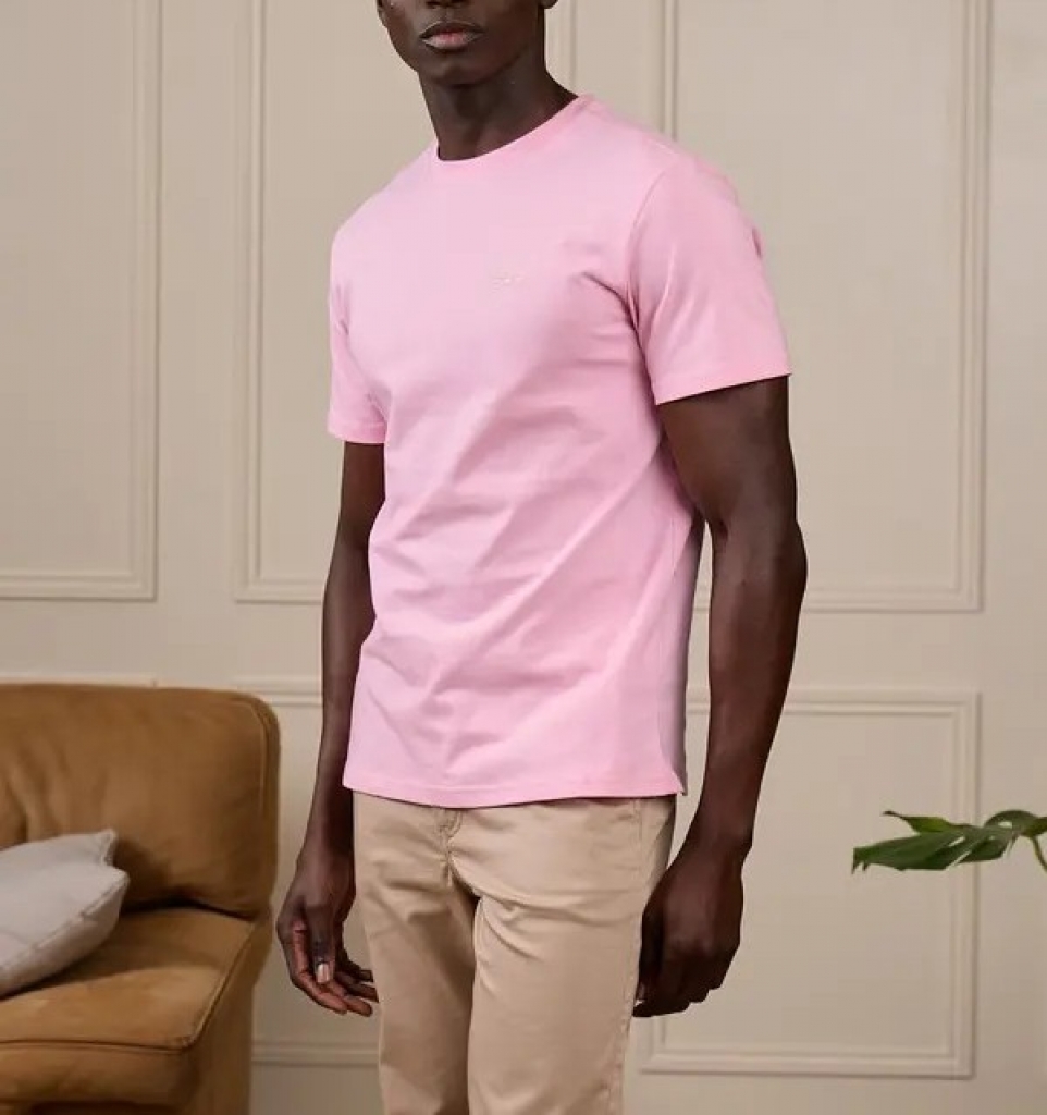 Soyez à l’aise toute la journée avec ce tee-shirt pour homme à manches courtes. Avec son coloris rose uni, son col rond et sa coupe droite, ce modèle convient à tous les styles et morphologies. Confectionné intégralement en coton, il garantit douceur et respirabilité. Le détail qui change tout ? Sa petite broderie « 3 vaches » contrastée. Cet essentiel facile à vivre se porte seul ou sous un gilet de notre collection pour un style à la fois élégant et décontracté !.