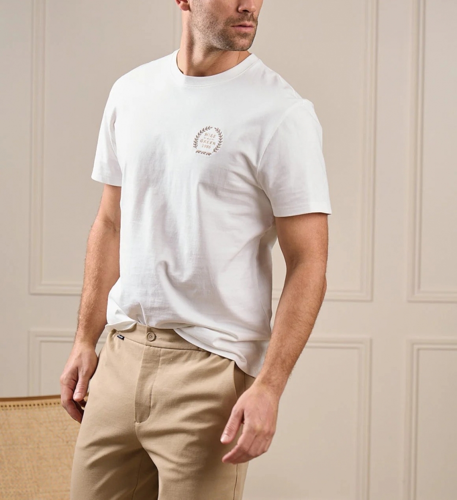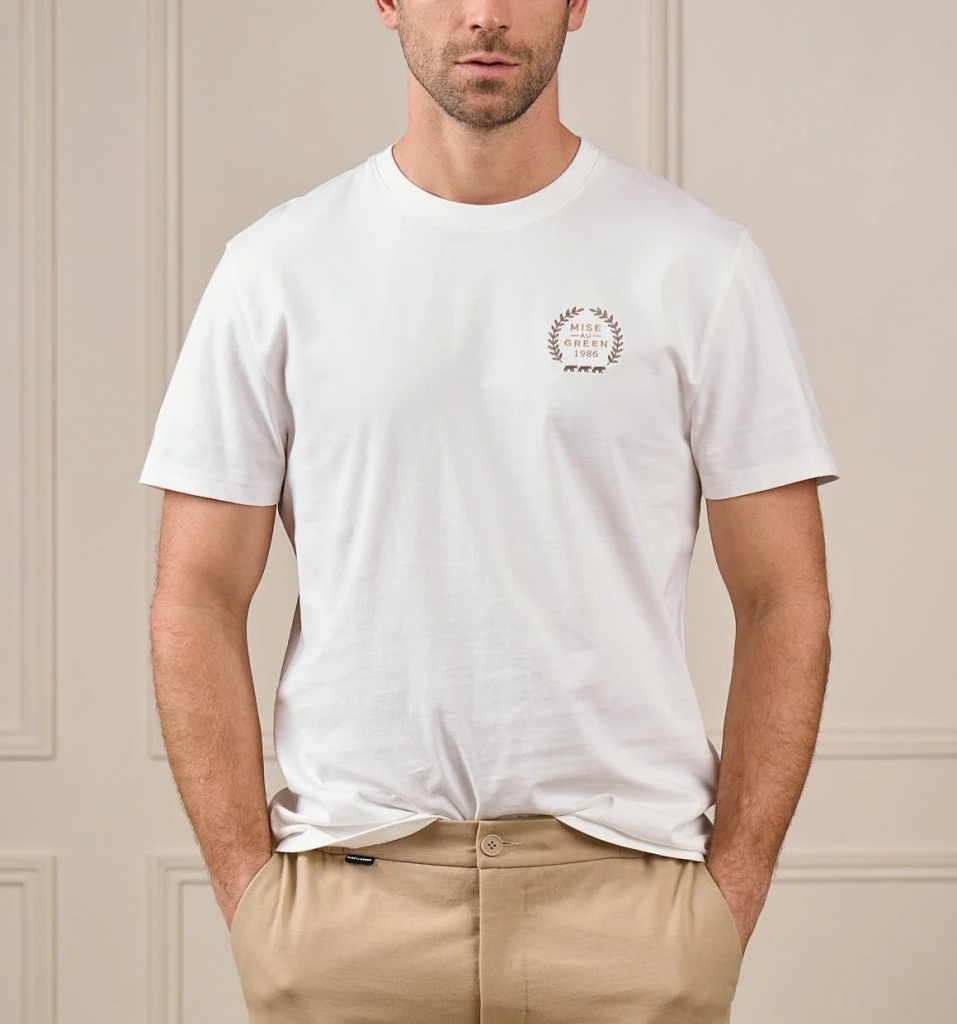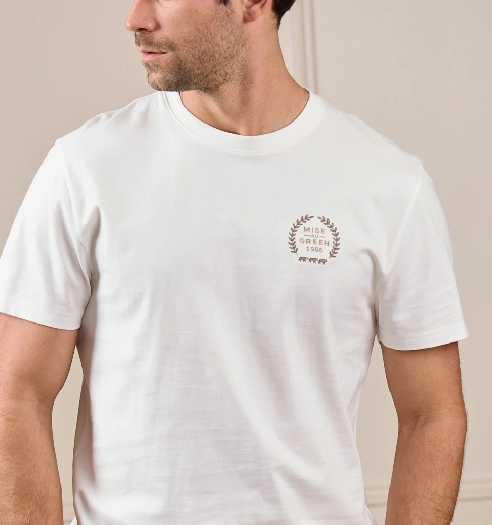 Tee shirt signé MISE AU GREEN. Collection Printemps Eté 2026.